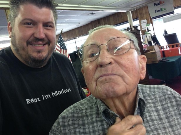 He is a local man, named Dillard Kelley. And in recent weeks, he’s been telling us more stories of his time in WW2 (he’s finally opening up to us after doing business with us for awhile). I consider his stories a treasure to be a part of, just as if I were given a gift. Pictured here is Mr. Kelley with me today, after we had a particularly touching exchange.